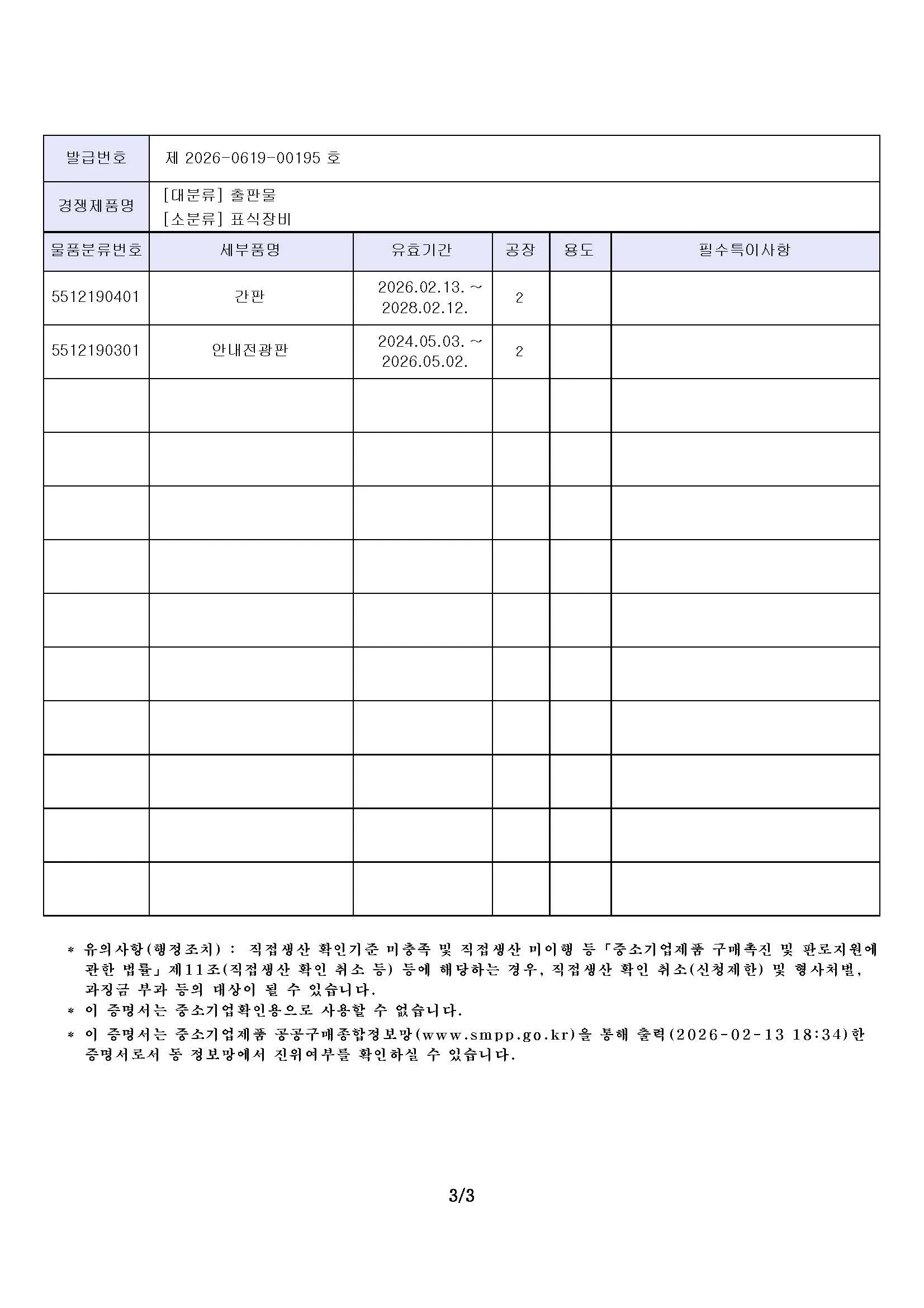 직접생산확인증명서 : 간판/안내전광판